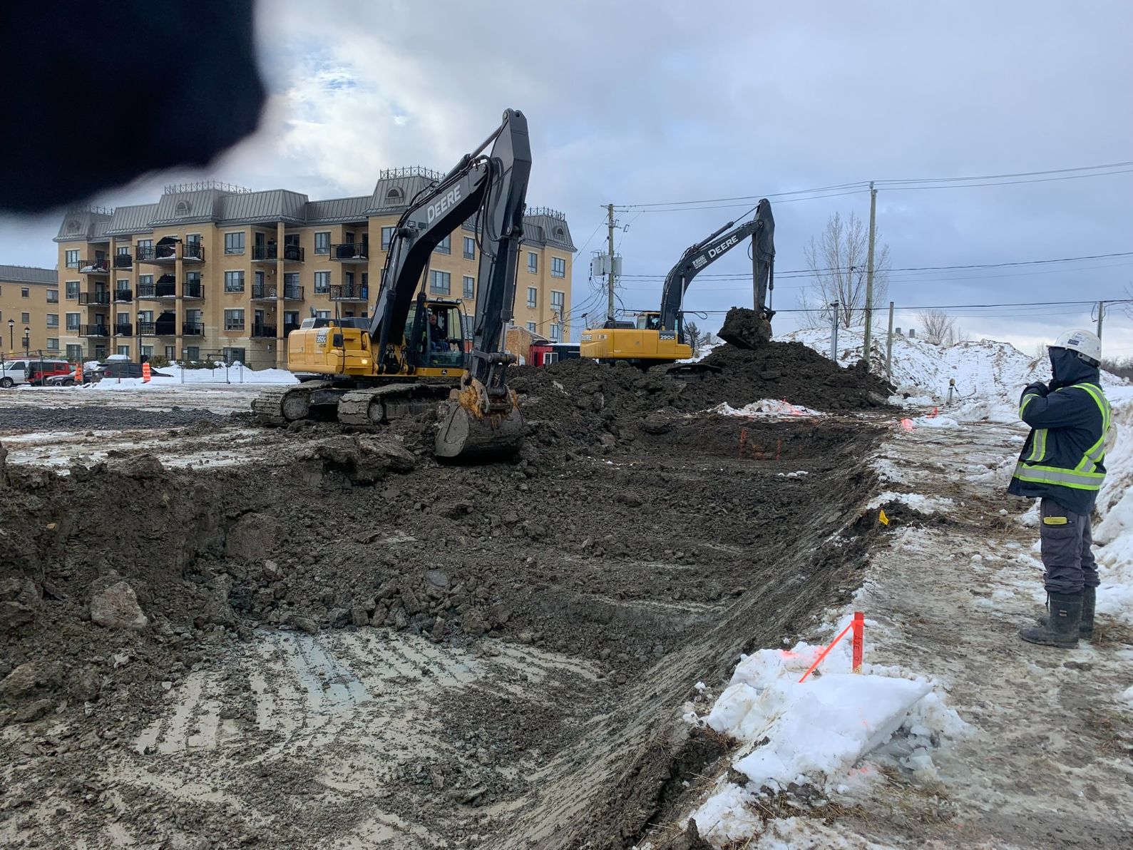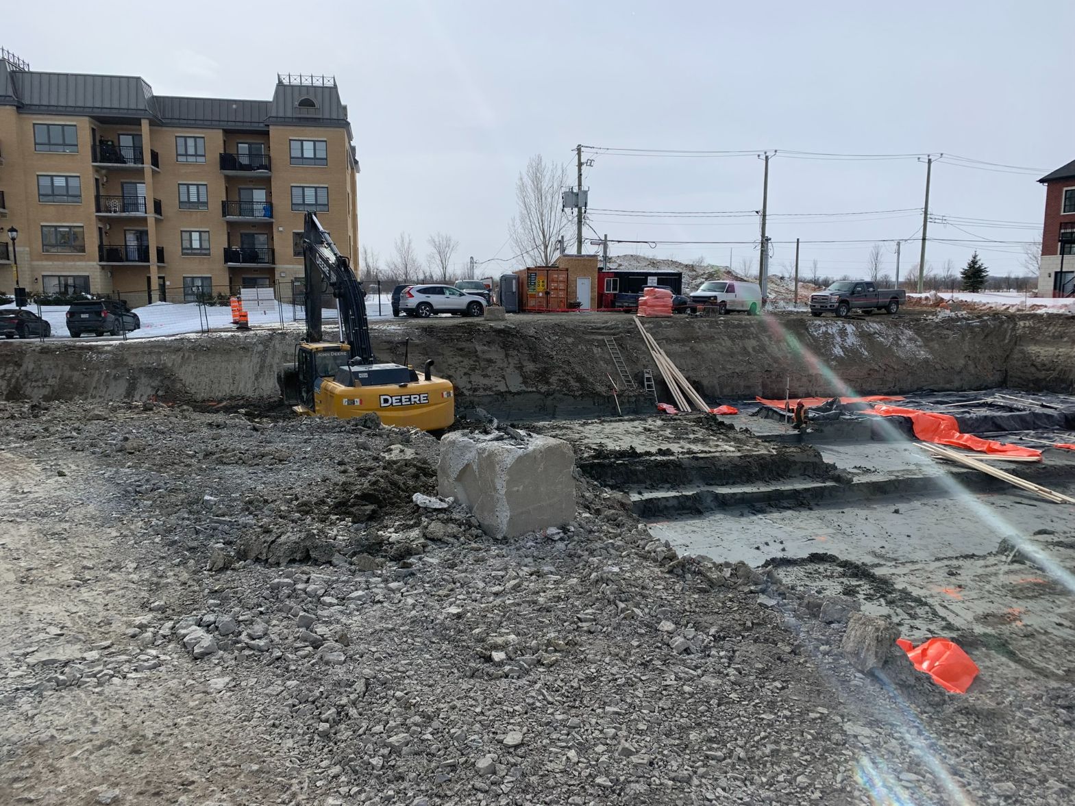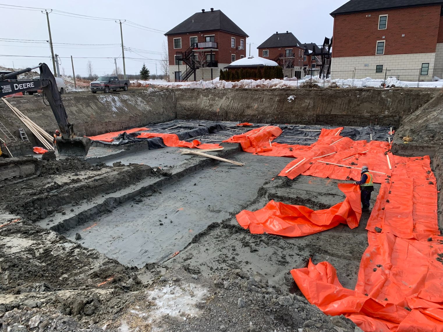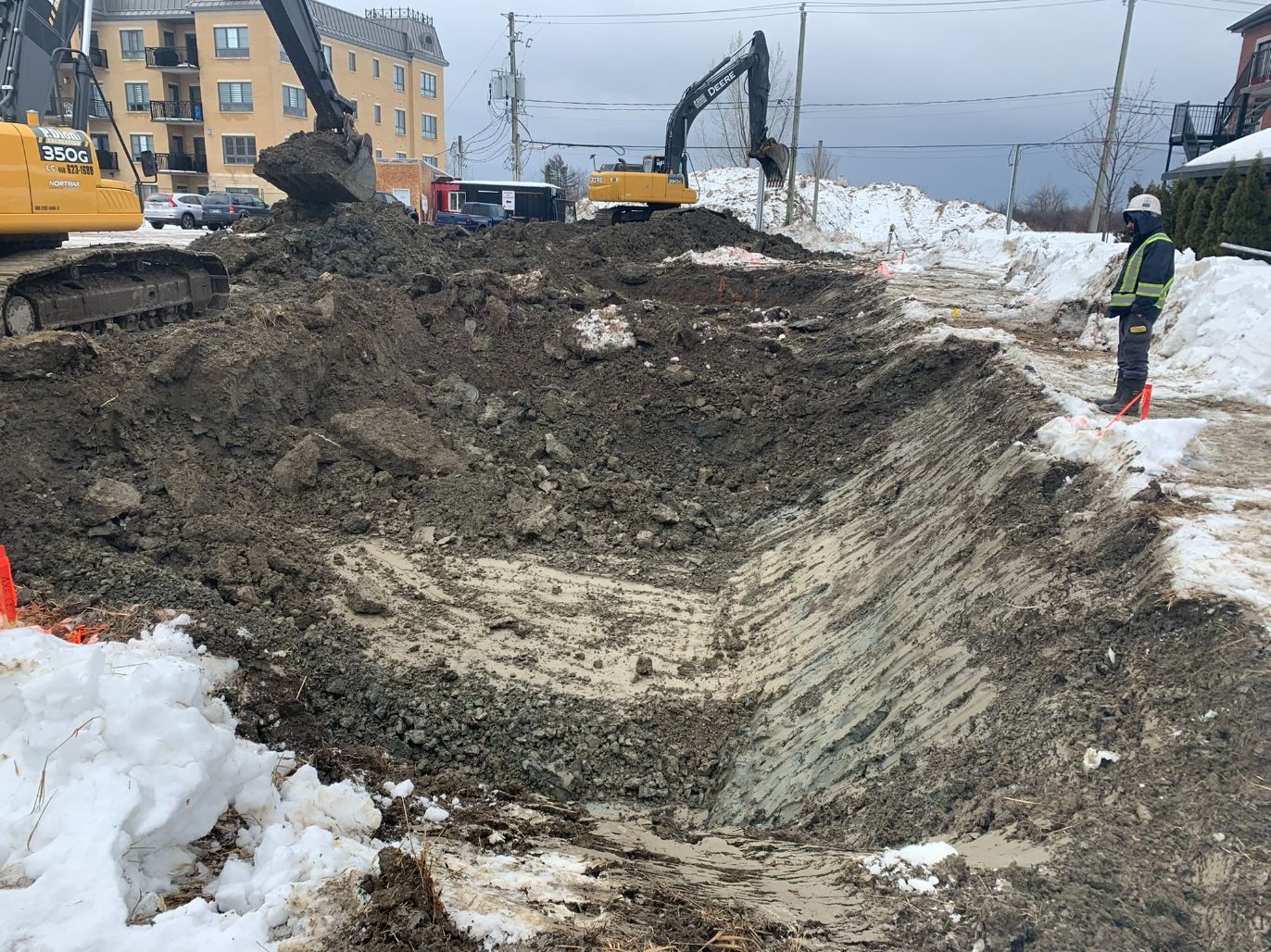 - Excavation pour la bâtisse ainsi que pour la plomberie souterraine.