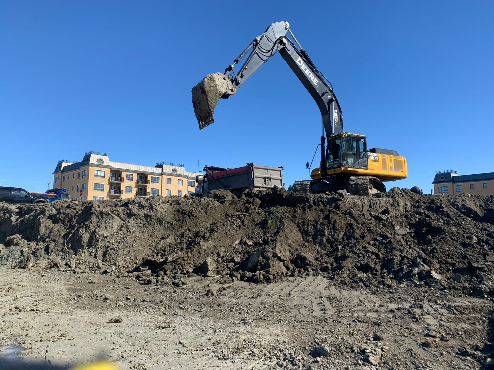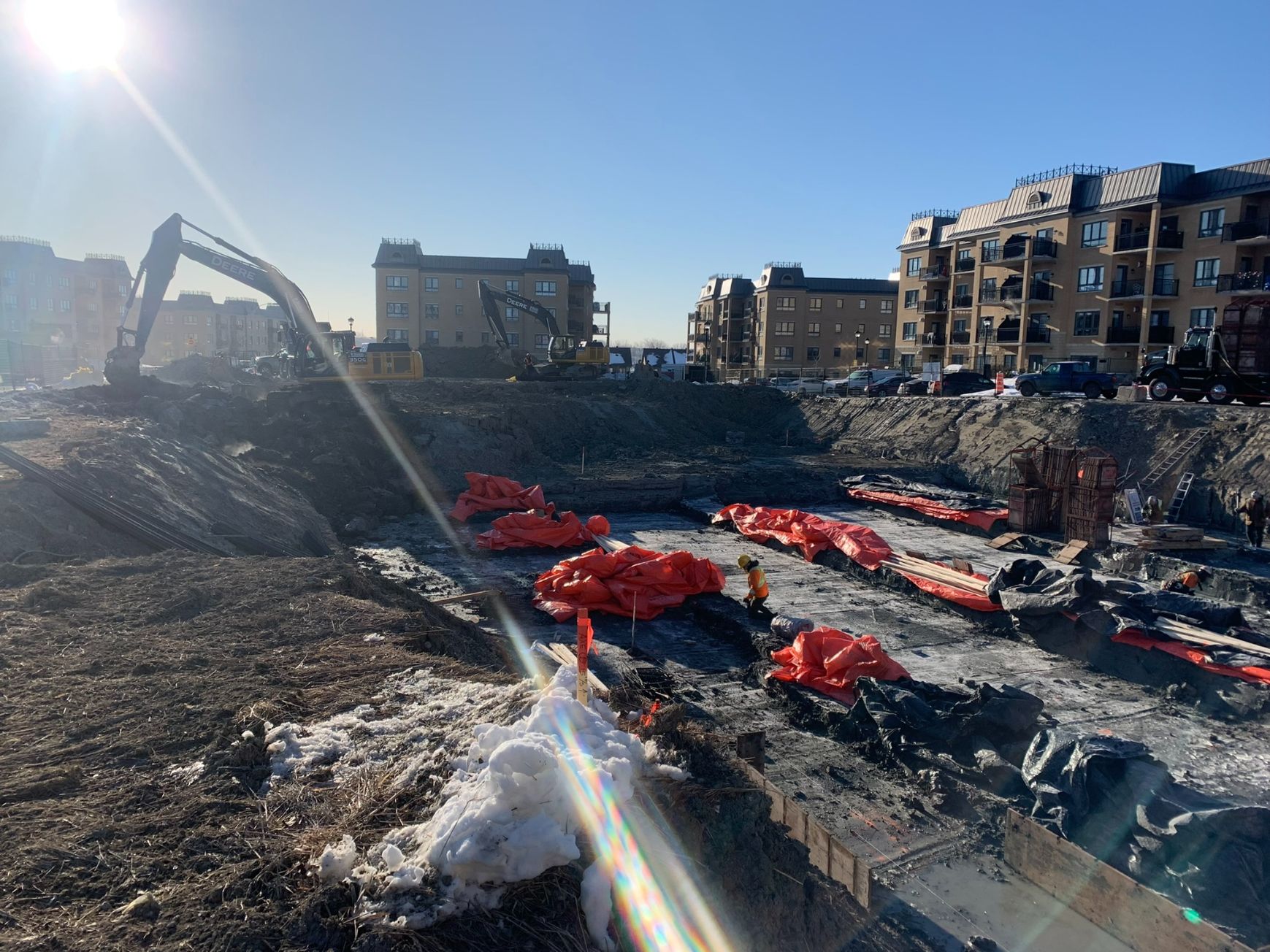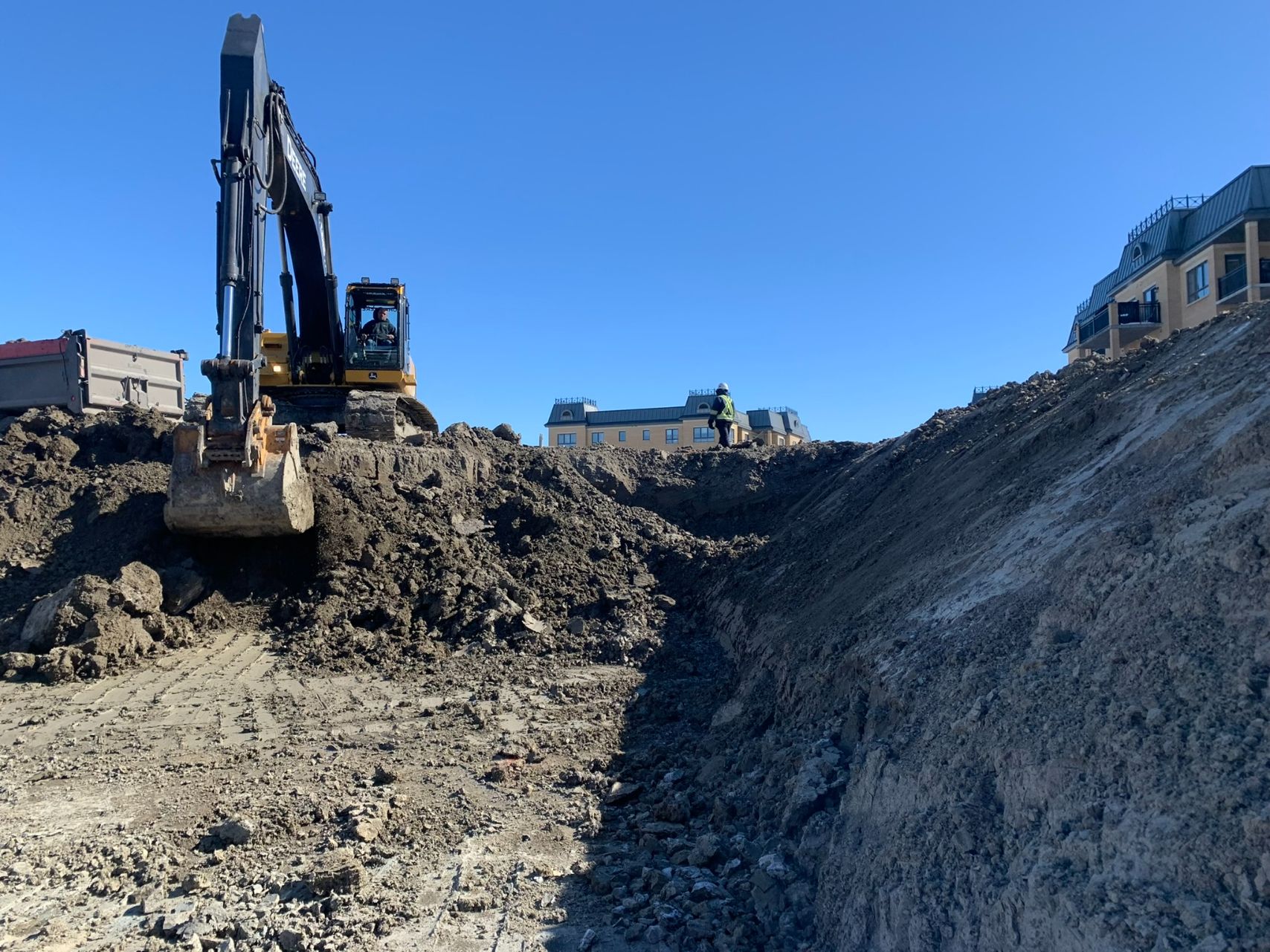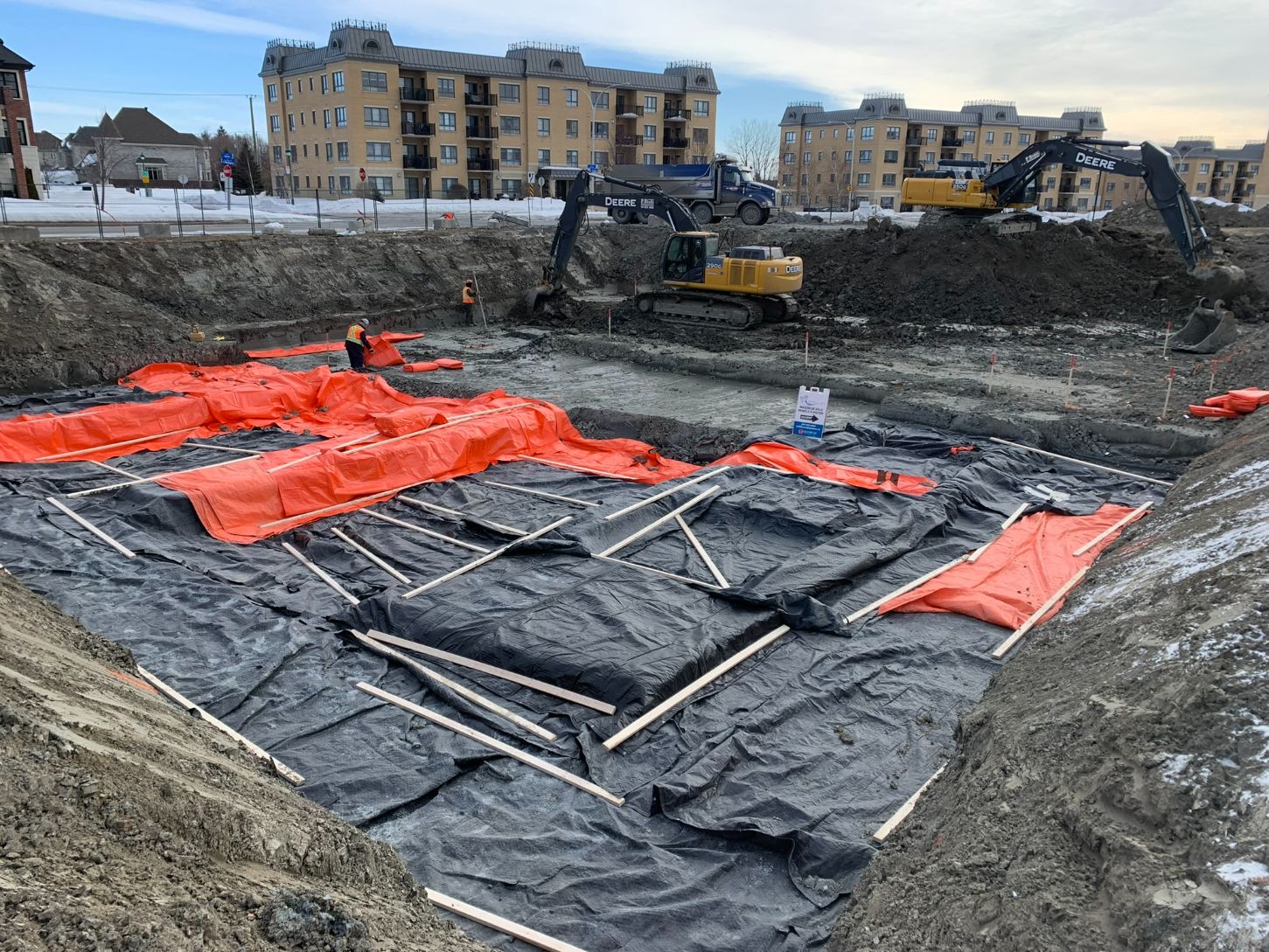 - Excavation pour la bâtisse ainsi que pour la plomberie souterraine.
